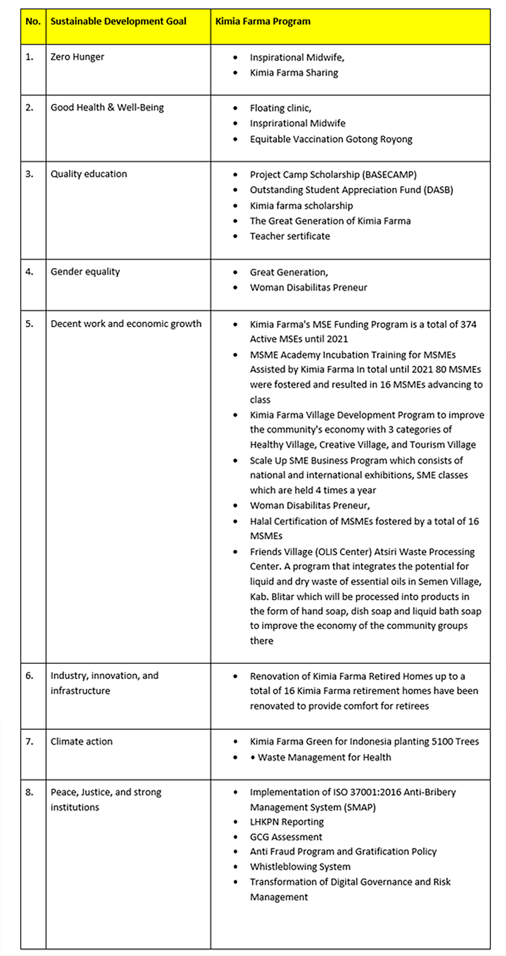 8 Priority Target for Kimia Farma's Sustainable Development Goals (TPB/SDGs)